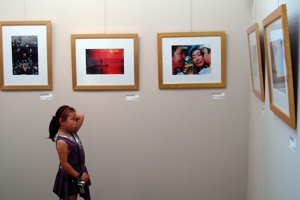 認真研習(xí),筑夢未來。攝影展覽館內(nèi),小女孩撓頭沉思,神情專注的凝視著一副攝影作品,分析拍攝手法。