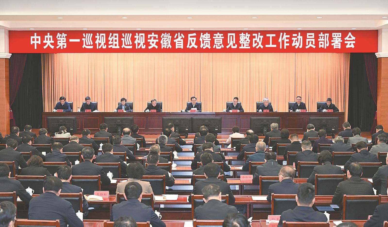 12月15日下午,中央第一巡視組巡視安徽省反饋意見整改工作動員部署會在合肥召開。省委書記梁言順出席并講話,強調要深入學習貫徹習近平總書記關于巡視工作的重要論述和考察安徽重要講話精神,強化政治擔當,發揚斗爭精神,堅決推動巡視反饋問題改徹底改到位。省委副書記、省長王清憲主持。省政協主席唐良智,省委常委,省人大常委會、省政府、省政協負責同志,省法院院長、省檢察院檢察長出席。會上通報了中央巡視整改工作安排。